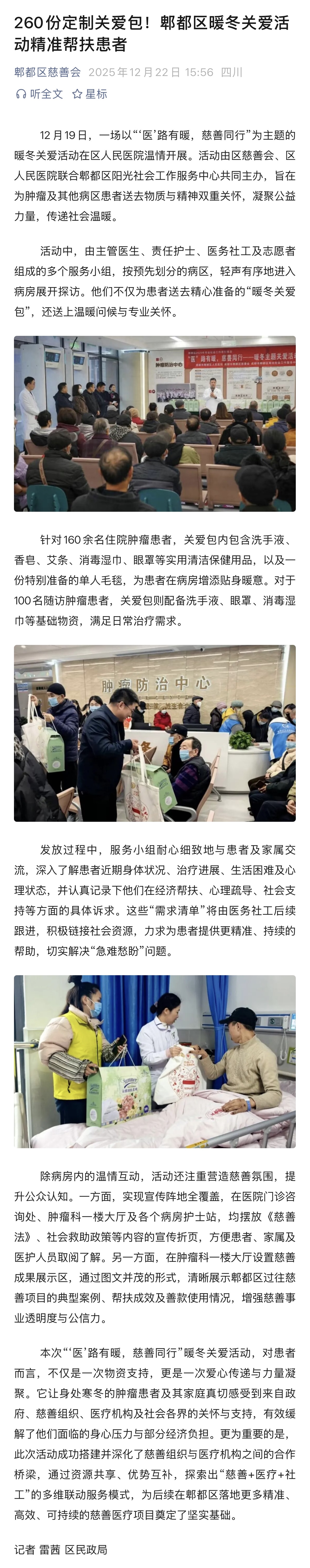 260份定制关爱包!郫都区暖冬关爱活动精准帮扶患者