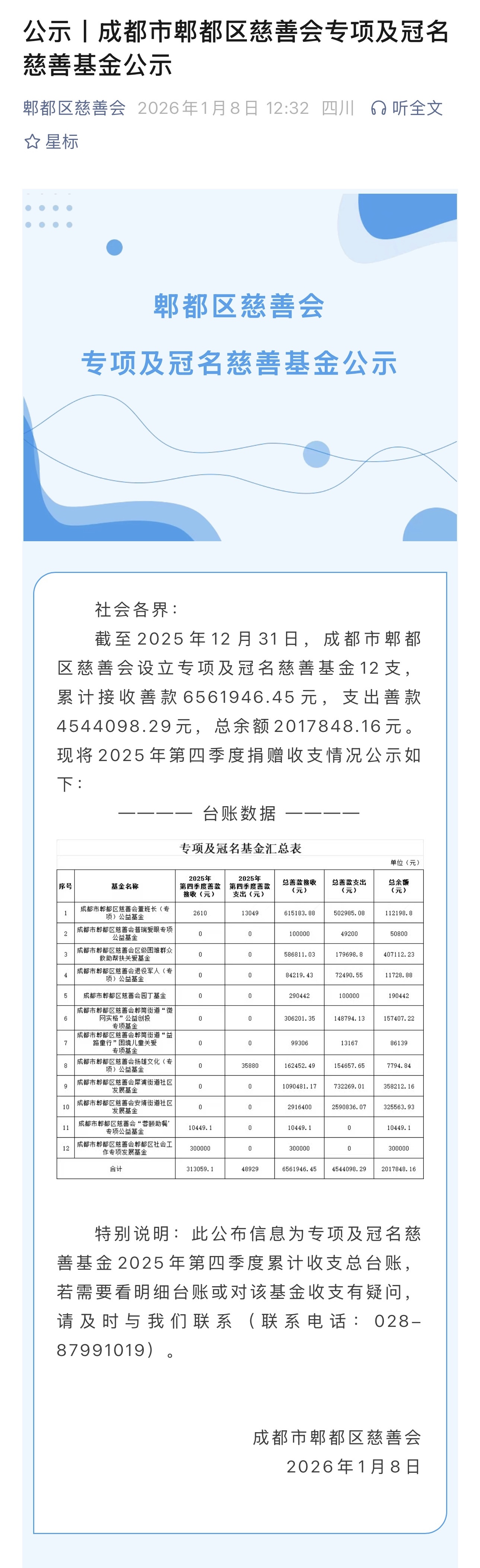 公示丨成都市郫都区慈善会专项及冠名慈善基金公示